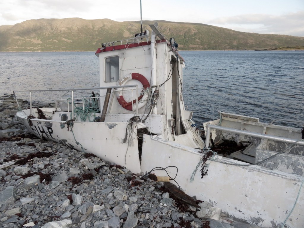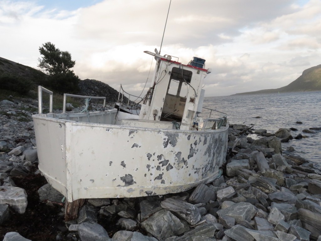 Desweiteren sind da noch die Lost Places entlang der Strecke, verlassene, verfallene Orte, die wir ja immer besonders gerne erkunden. Hinter dem Örtchen Smørfjord lichten wir einen kleinen, auf Grund gelaufenen Fischkutter ab.