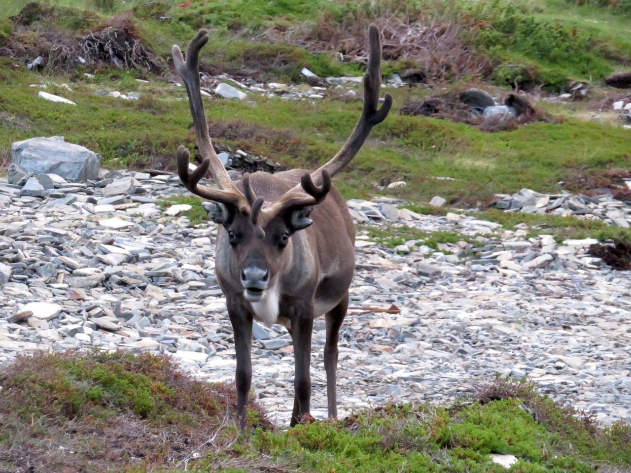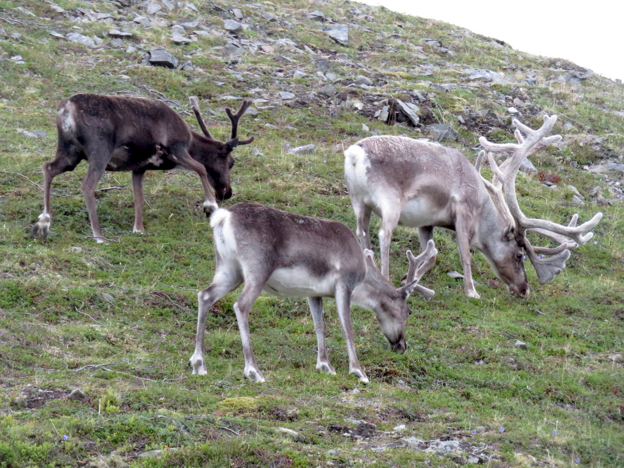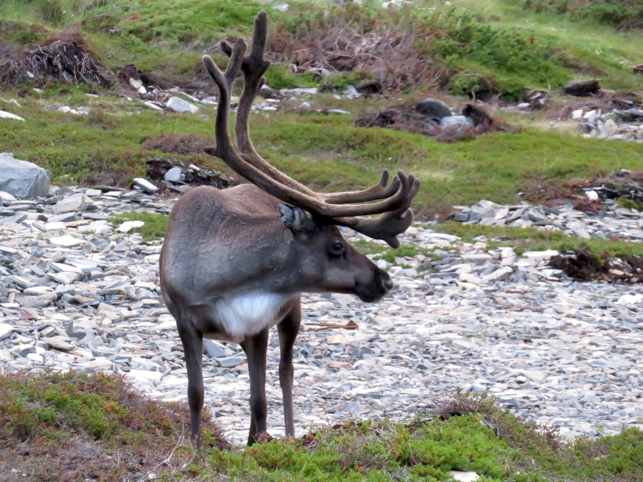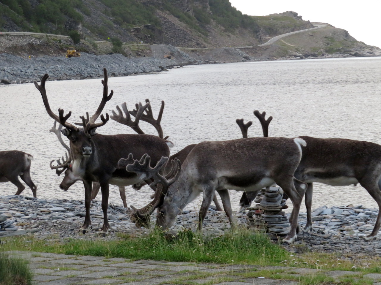 Neben der weiten, sensationellen Landschaft am Eismeer begeistern uns außerdem zahlreiche Begegnungen mit Rentieren. Die relativ scheuen Huftiere, die häufig mit prächtigen Geweihen ausgestattet sind, lassen sich am besten aus dem Auto fotografieren. Jeder unserer Versuche, uns ihnen fußläufig zu nähern, bewirkte bei den Tieren eine zügige Flucht.