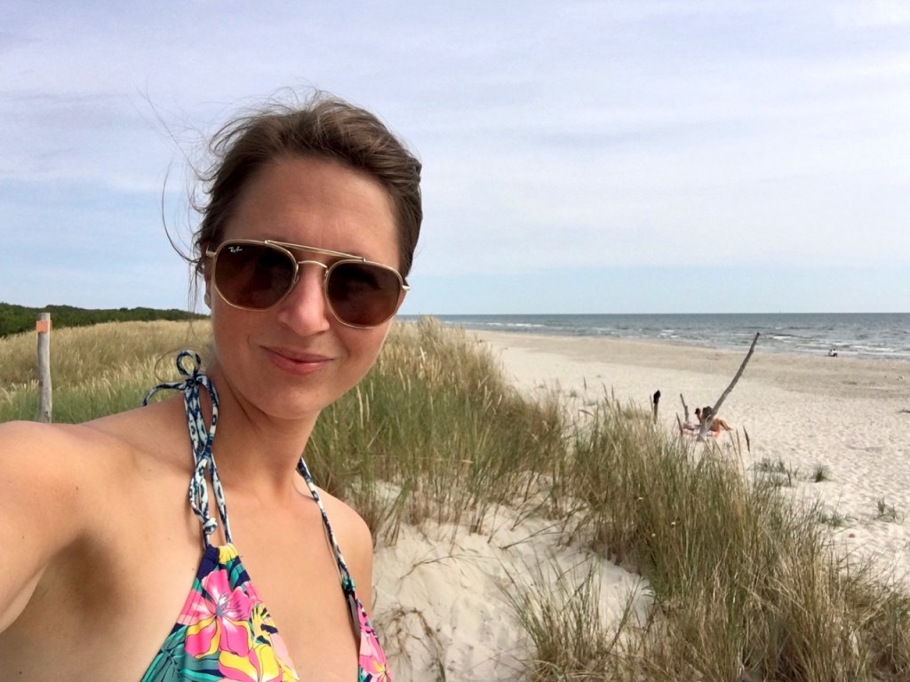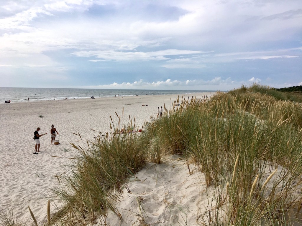 Am nächsten Morgen fahren wir dann weiter zu einem der schönsten Strände Schwedens, dem 25 Kilometer östlich von Ystad liegenden Sandhammaren Strand und Havsbad. Der weiße Pulversand und die mit Gras bewachsenen Dünen laden zum herrlichen Sonnenbad ein, was ich sehr genieße. Auch schwimmen kann man hier gut, die Ostsee ist jedoch an dieser südlichsten Spitze Schwedens etwas wilder, da hier starke Strömungen herrschen. Sei also vorsichtig, wenn du ins Wasser gehst! Bei nicht ganz so sommerlichen Temperaturen bietet sich der breite Sandstrand auch hervorragend für ausgedehnte Strandwanderungen an.