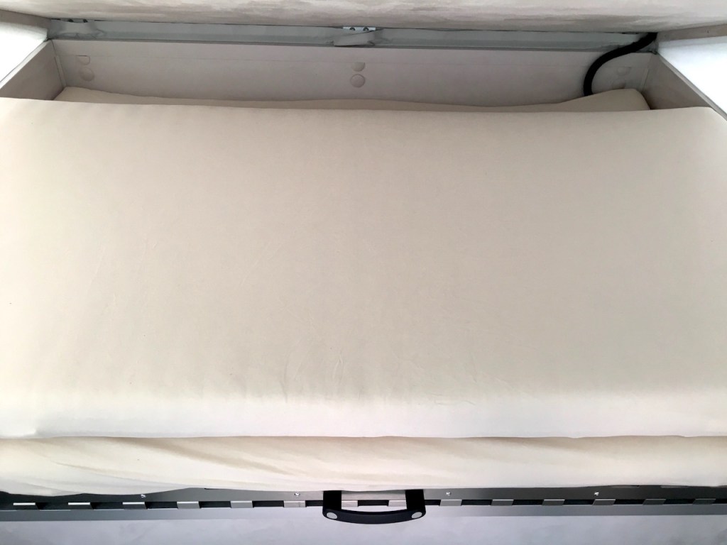 Ein richtiger Luxus in unserem 4×4-Offroad-Camper ist das 1,60×2,00 Meter große Bett. Diese Maße hat es selbstverständlich nur in komplett ausgezogenem Zustand. Sobald wir unterwegs sind, liegen Lattenrost und Matratze zweiteilig übereinander. Der eine Matratzen-Teil misst dabei 120x160cm, der andere 80x160cm. Für diese Größen gibt es natürlich keinerlei Standard-Spannbettlaken. Bei der Recherche für Laken nach Maß stieß ich glücklicher Weise auf die Seite „Bettlaken für Reisemobile“ des BettwarenShops, der eine große Auswahl an passenden Spannbettlaken in vielen Formen und Farben als Maßanfertigung anbietet. Inzwischen besitzen wir zwei Sätze Spannbettlaken und sind sehr zufrieden mit der Qualität der Produkte.