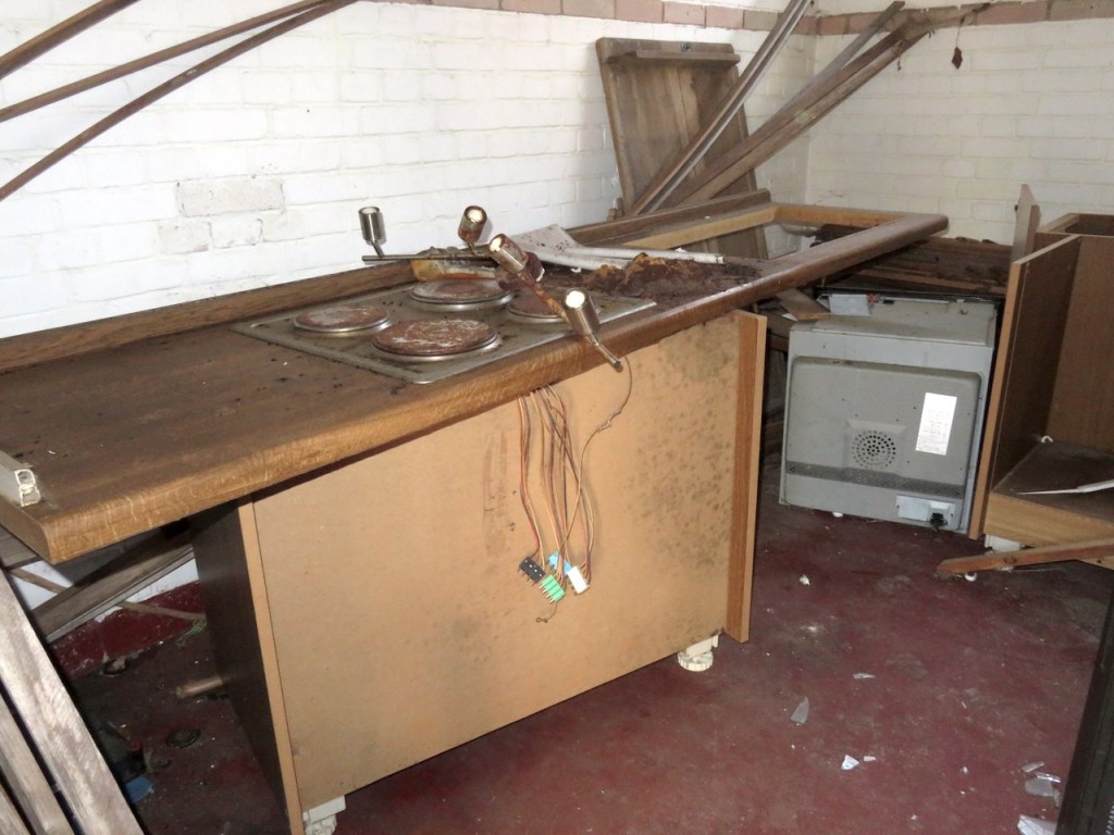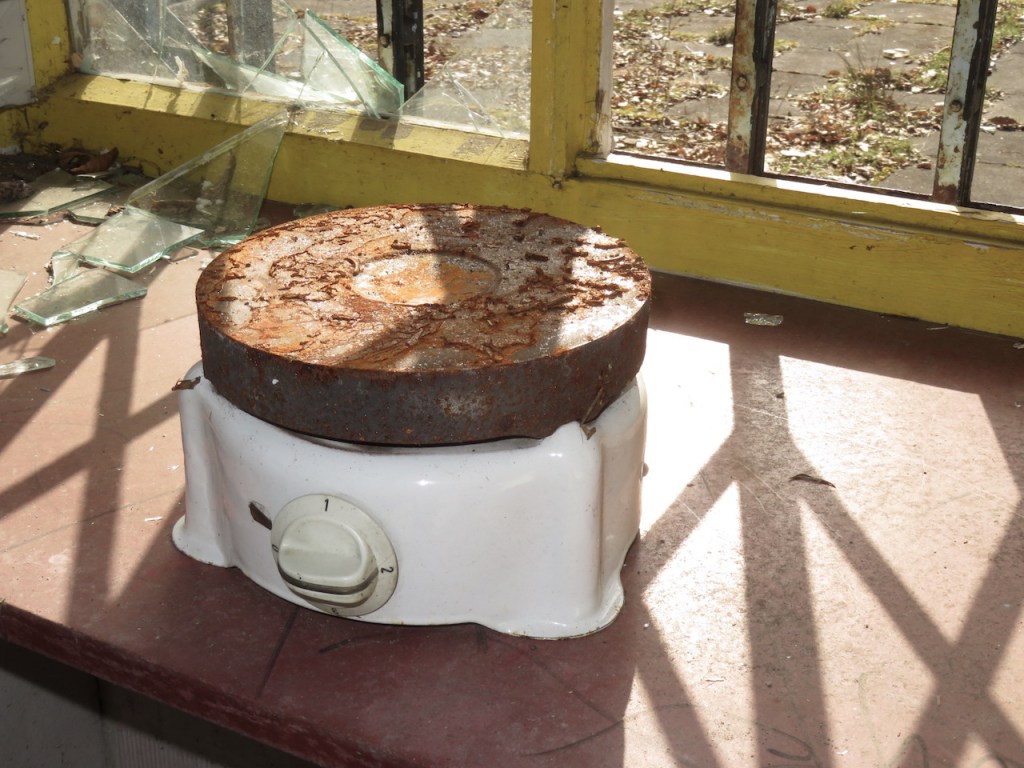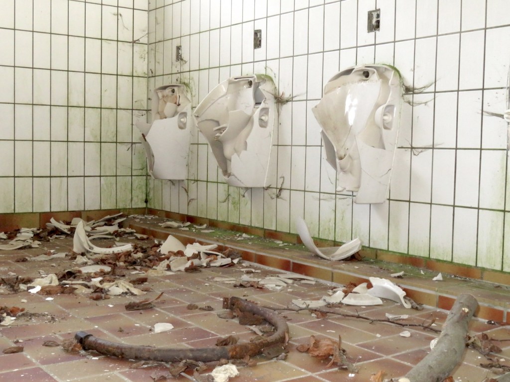 Auch die stark demolierte Küche und die Toilettenräume geben gute Motive ab, wie ich finde, und so arbeite ich mich allmählich von Raum zu Raum weiter. Mein Puls schlägt schneller vor Aufregung, denn auch wenn wir inzwischen schon viel Erfahrung beim Erkunden von Lost Places auf Reisen haben, habe ich immer noch die latente Angst, doch von jemandem oder etwas überrascht zu werden, was mich zu Tode erschrecken könnte.