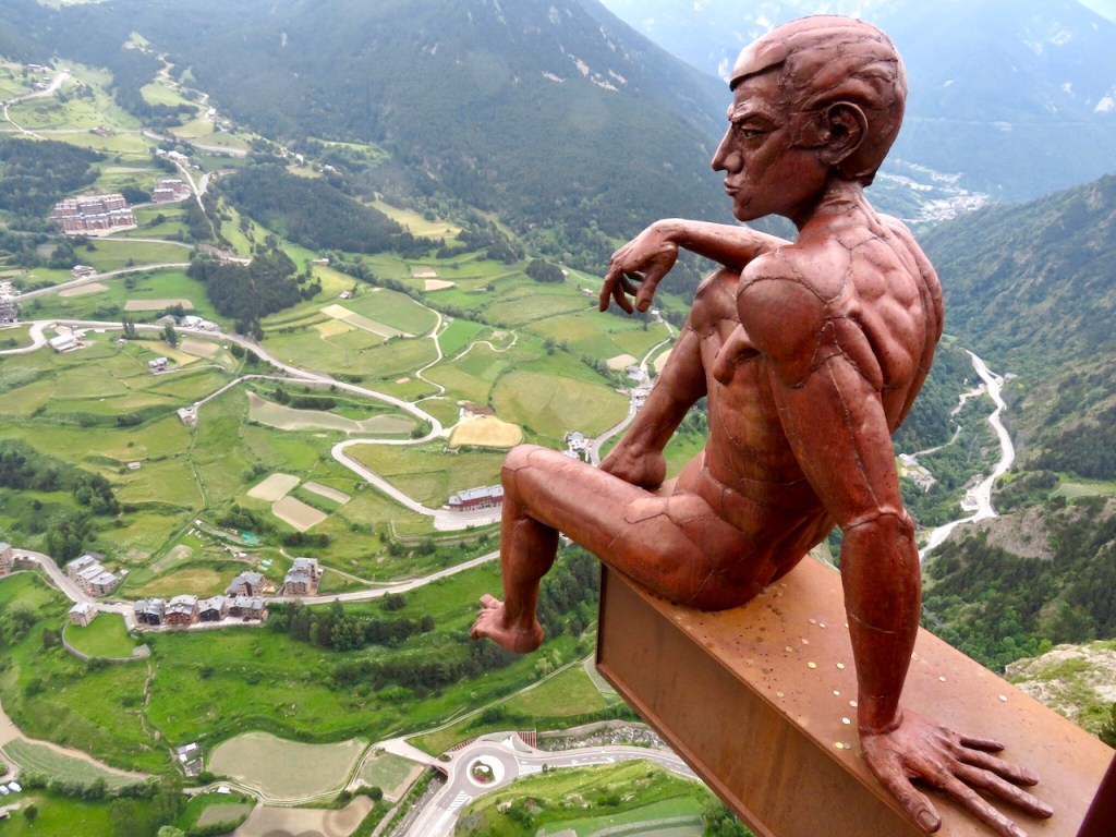 Am Nachmittag fahren wir weiter nach Canillo. Denn hier führt 500 Meter über dem Ort ein spektakulärer Skywalk ins luftige Nichts. Der Mirador del Roc del Quer wurde 2016 eröffnet und gehört zu den beliebtesten Attraktionen in Andorra. Wo sich normalerweise Busse voller Touristen entladen und lange Schlangen bilden, herrscht während unseres Besuchs – wohl wegen Corona – gähnende Leere, und wir haben die bronzene Statue, die am Ende der gläsernen Aussichtsplattform sitzt, und den grandiosen Ausblick ganz für uns alleine.