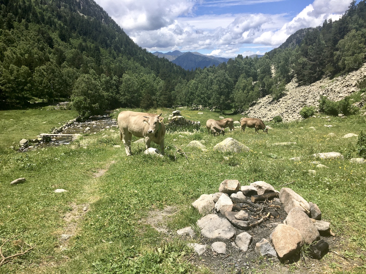 An unserem zweiten Vormittag in Andorra fahren wir nach Engolasters, um eine Wanderung in das hübsche Madriu-Tal zu unternehmen. In einer Kurve (Parkplatz Via Ferrada del Roc d´Esquers) geht der Wanderweg von der Straße ab. Der steile Pfad, der kontinuierlich bergauf führt, verläuft stets in unmittelbarer Nähe des Flüsschens und kann eigentlich nicht verfehlt werden. Wir passieren Wälder und Wiesen und erreichen nach etwa zwei Stunden die Alm des unbewirtschafteten Refugio Fontverd. Nach einer stärkenden Brotzeit beschließen wir den Rückweg anzutreten, da es am Nachmittag gewittern soll. Geübte Wanderer können von hier aus aber noch weiter laufen, z.B. zum Fuße des Col de Puymorens. Auch Rundwanderungen über zwei weitere Refugios sind möglich.