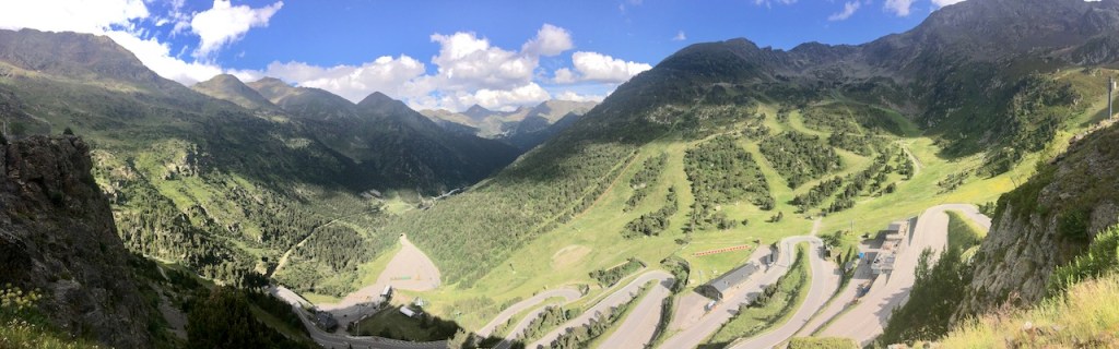 Am Nachmittag des Folgetags fahren wir weiter, immer bergauf bis ans Ende des Tales der Valira del Nord, wo auf etwa 2000 Metern das Skigebiet Ordino-Arcalis beginnt. Nach 18Uhr hält dich keiner auf und du kannst im Sommer die gut ausgebaute Asphaltstraße bis zum Restaurant La Borda de la Coma (gute Küche!) mit einem Fahrzeug zurücklegen. Spektakulär ist dabei vor allem der Serpentinenabschnitt oberhalb der Kabinenbahn-Talstation Ordino-Arcalis. Eine wirklich tolle Strecke mit sehr fotogener Landschaft!