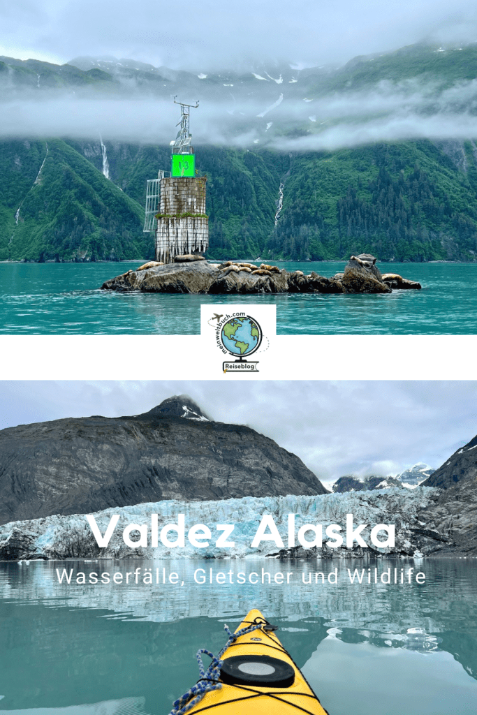 Die direkt am Prince William Sound liegende Kleinstadt Valdez im Süden Alaskas besuchen wir nach unserem Aufenthalt im Wrangell-St. Elias Nationalpark. Ich hatte gelesen, dass sich hier vor allem die landschaftliche Umgebung der 4000-Einwohner-Stadt lohnt und dabei allem voran ein Ausflug aufs Wasser, um Tiere wie Wale, Seehunde und Otter, aber vor allem auch die Gletscherzungen des riesigen Columbia Glacier aus nächster Nähe zu erleben. Und obwohl es fast die gesamten 3 Tage unseres Aufenthalts in Valdez regnete und diesig war, hat sich der Abstecher hierher für uns sehr gelohnt. Im folgenden Beitrag verrate ich dir unsere fünf persönlichen Highlights.