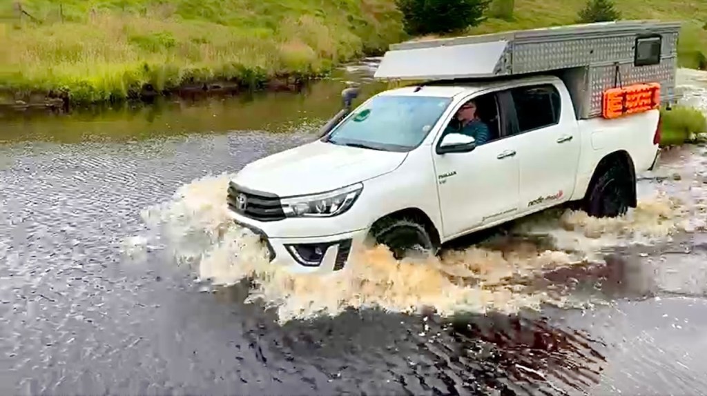 Direkt nach einigen hundert Metern Fahrt stehen wir vor unserer ersten Fluss-Durchfahrt mit Samu. Das Wasser ist klar, und wir können gut eine Fahrrinne ausmachen, daher also kein Problem. So geht es immer weiter in den nächsten zwei Stunden. Insgesamt neun Fluss-Durchfahrten warten auf uns auf der Strata Florida. Doch auch die tiefste mit etwa 80 Zentimetern ist kein Problem für unseren Offroad-Camper!