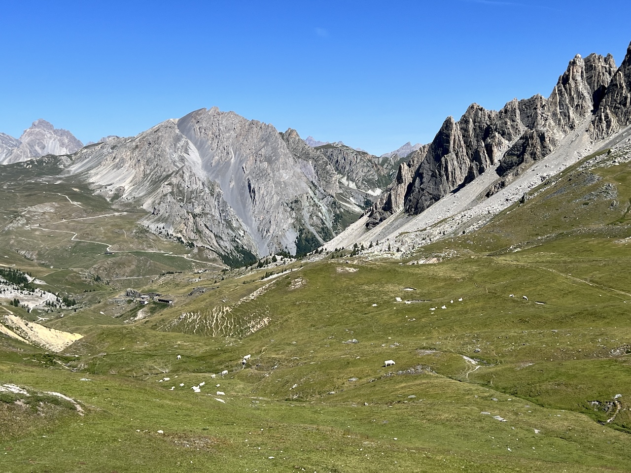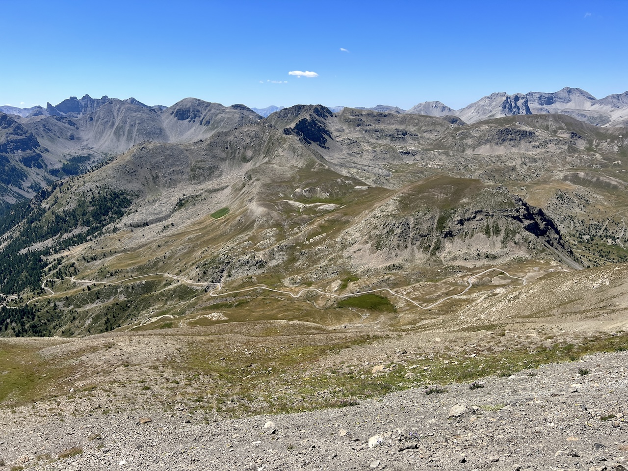 Über den 2715 Meter hohen französischen Gebirgspass Col de la Bonette fahren wir weiter Richtung Süden. Die schmale, aber durchgehend asphaltierte Straße verbindet das Tal der Ubaye mit dem Tal der Tinée und beschert uns wieder einige spektakuläre Bergpanoramen auf schroffe, karge Gipfel um die 3000 Meter Höhe. Die Passhöhe des Col de la Bonette bildet den Ausgangspunkt einer zwei Kilometer langen Ringstraße, die um den Gipfel herumführt. Von einem kleinen Parkplatz kann man eine kurze Wanderung auf den Gipfel unternehmen, ein zwar windiges aber unvergessliches Erlebnis.