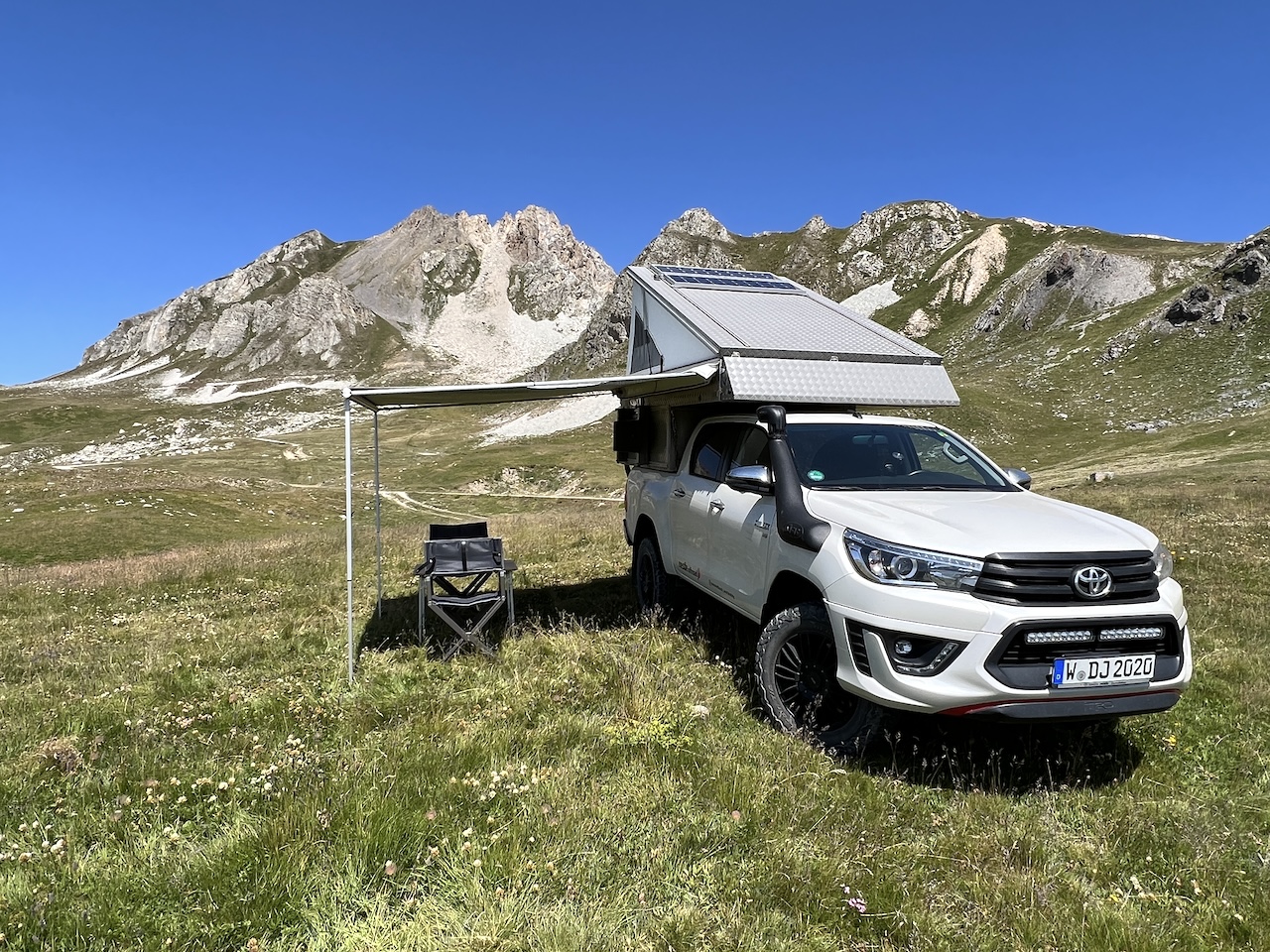 → Fahrzeug? Für die Offroad-Abenteuer dieses Roadtrips ist ein geländegängiges Allrad-Fahrzeug mit guten AT-Reifen, genug Bodenhöhe und Böschungswinkel unbedingt nötig! Wir fahren einen höher gelegten Toyota Hilux, welcher von der Länge (5,40m) und Breite (1,85m) her wohl das absolut Maximale für einige dieser Routen darstellt. Wir sind überall gut durchgekommen und hatten keinerlei Probleme mit der Größe/Höhe (2,30m) des Fahrzeugs.