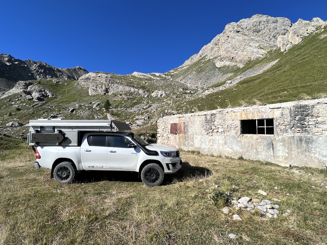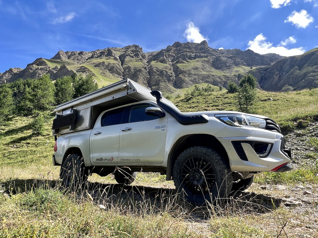 Nach einem spektakulären 4-wöchigen Roadtrip durch Alaska und Yukon im Sommer 2023 hatten wir nach unserer Rückkehr nach Deutschland noch zwei Wochen Ferien übrig. Unbedingt sollte auch unser Offroad-Camper Samu noch auf seine Kosten kommen, und wir planten kurzerhand einen Trip in die Westalpen. Als Westalpen bezeichnet man den Teil der Alpen, entlang dessen die drei Grenzen Schweiz, Frankreich und Italien aufeinander treffen. Die Staatsgrenzen folgen größtenteils dem Alpenhauptkamm, sodass viele der Viertausender-Gipfel auf oder in der Nähe dieser Grenzen liegen. Alte Militärstraßen und Karrenwege führen durch dieses zum großen Teil unberührte, unerschlossene Gebiet. Ideal, wenn man mit einem Fahrzeug wie unserem abgeschieden und jenseits befestigter Straßen in den Bergen unterwegs sein will. Und so erlebten wir ohne große Erwartungen eine weitere traumhafte Reise in diesem Sommer 2023, die ich im folgenden Beitrag schildern werde. Bitte einsteigen und anschnallen:
