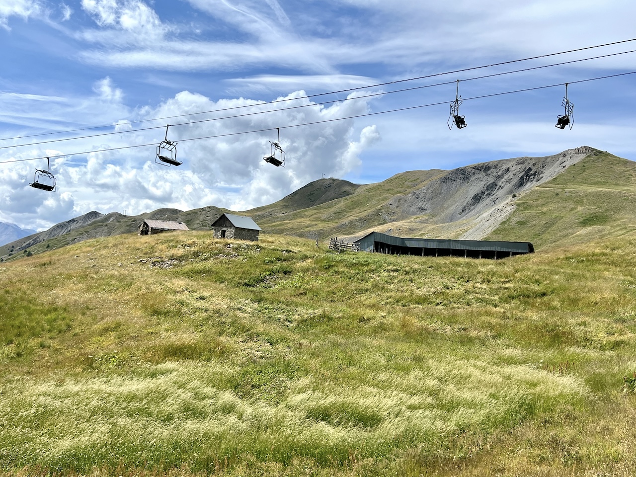 Noch am Nachmittag fahren wir eine weitere Tour auf den nahegelegenen Col de Valbelle. Über verschiedene Schotterpisten schlängeln wir uns von Crévoux immer weiter bergauf durch ein riesiges Skigebiet. Die im Sommer stillstehenden, brachliegenden Skilifte geben spannende Fotomotive ab. Am höchsten Punkt des Skigebiets parken wir unser Fahrzeug und wandern noch ein Stück weiter den Berg hinauf, um das perfekte 360°-Berg-Panorama zu genießen.