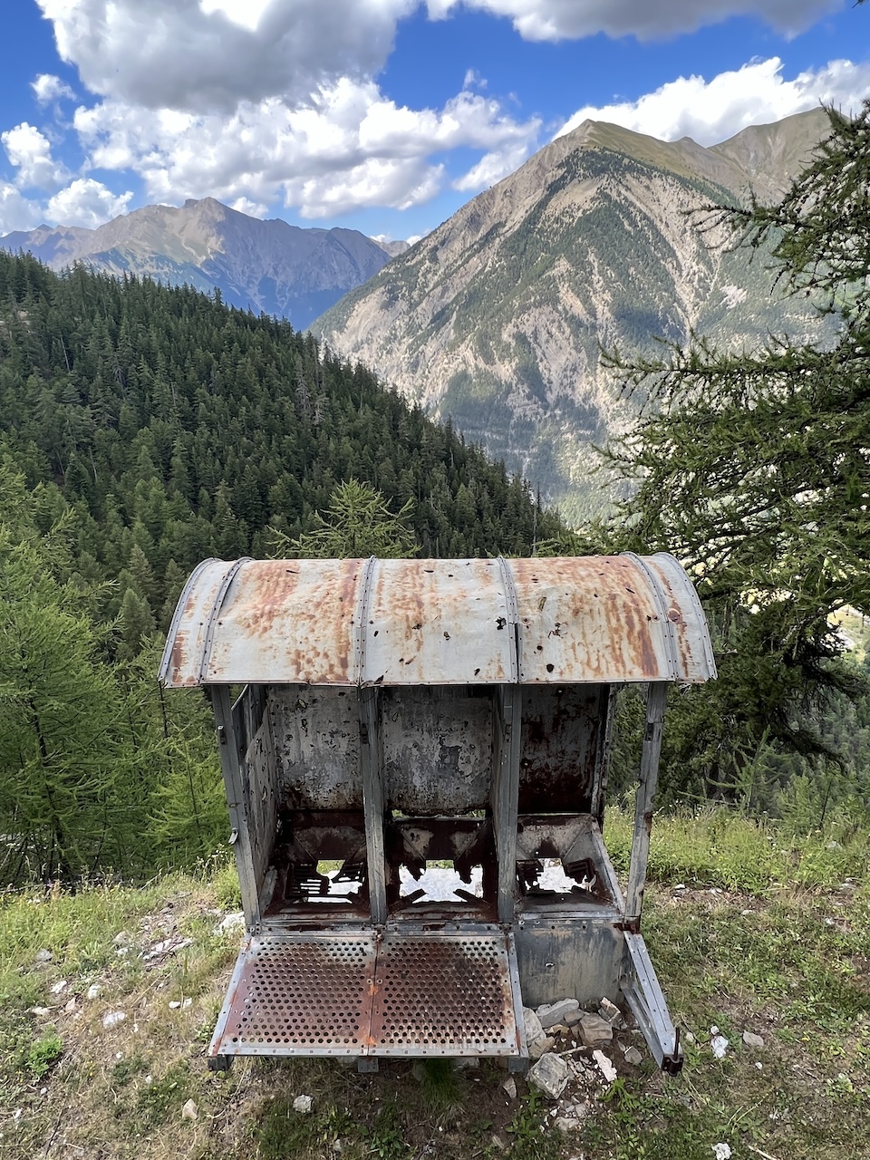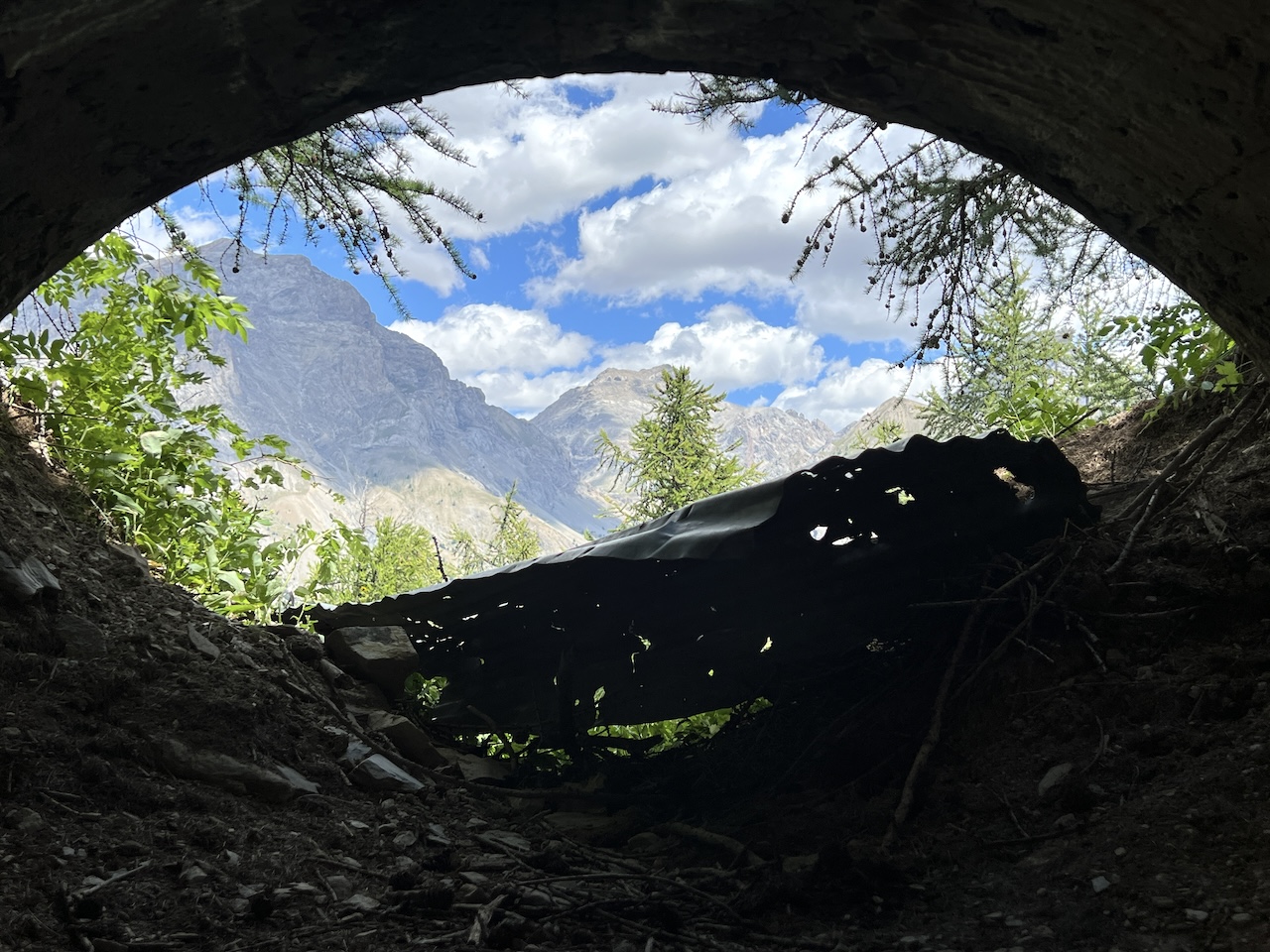 Über die landschaftlich wunderschöne, asphaltierte Strecke „Routes des Alpes“ fahren wir nach dem Besuch des Wasserfalls weiter ins Val d´Oronaye. Oberhalb dieses kleinen Ortes liegt das Fort de Roche-la-Croix, eine von zwei Befestigungsanlagen an der Nordflanke des Tete de Siguret (3032m). Eine steile, enge Schotterpiste schlängelt sich durch den Wald hinauf, und vor allem der anspruchsvolle Abzweig zum oberen Fort Supérieur ist nur etwas für sehr wendige Fahrzeuge! Beide Anlagen bieten eine spektakuläre Aussicht auf das Hochtal und die umliegenden Berggipfel. Außerdem sind die verlassenen Festungen aus der Zeit 1885-1900 ein Traum für Freunde von Lost Places, wie wir es sind. Wir schwingen also mal wieder begeistert die Kameras.